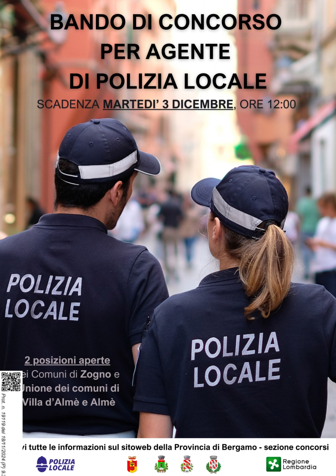Avviso di concorso per Agenti di Polizia Locale presso il Comune di Zogno e Unioni dei comuni lombarda Almè e Villa d'Almè