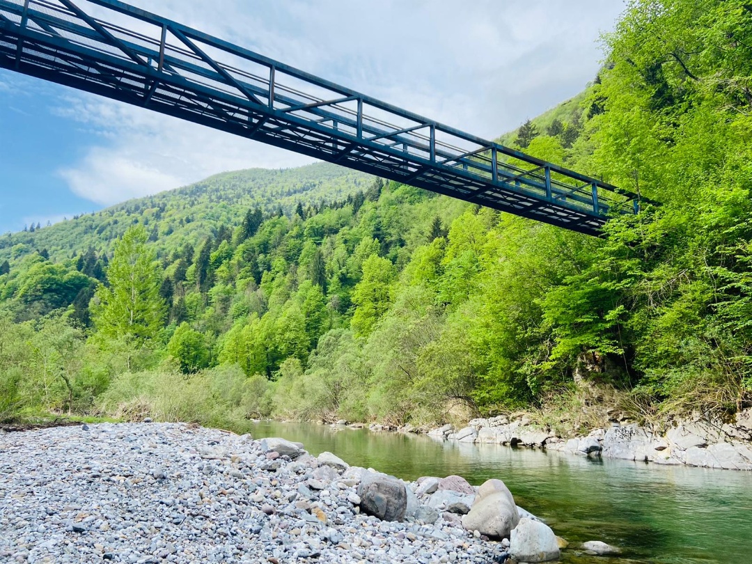 Ph: Piazza Brembana- Località i Fondi, sentiero ad anello, ponte di ferro blu (località Fucine)