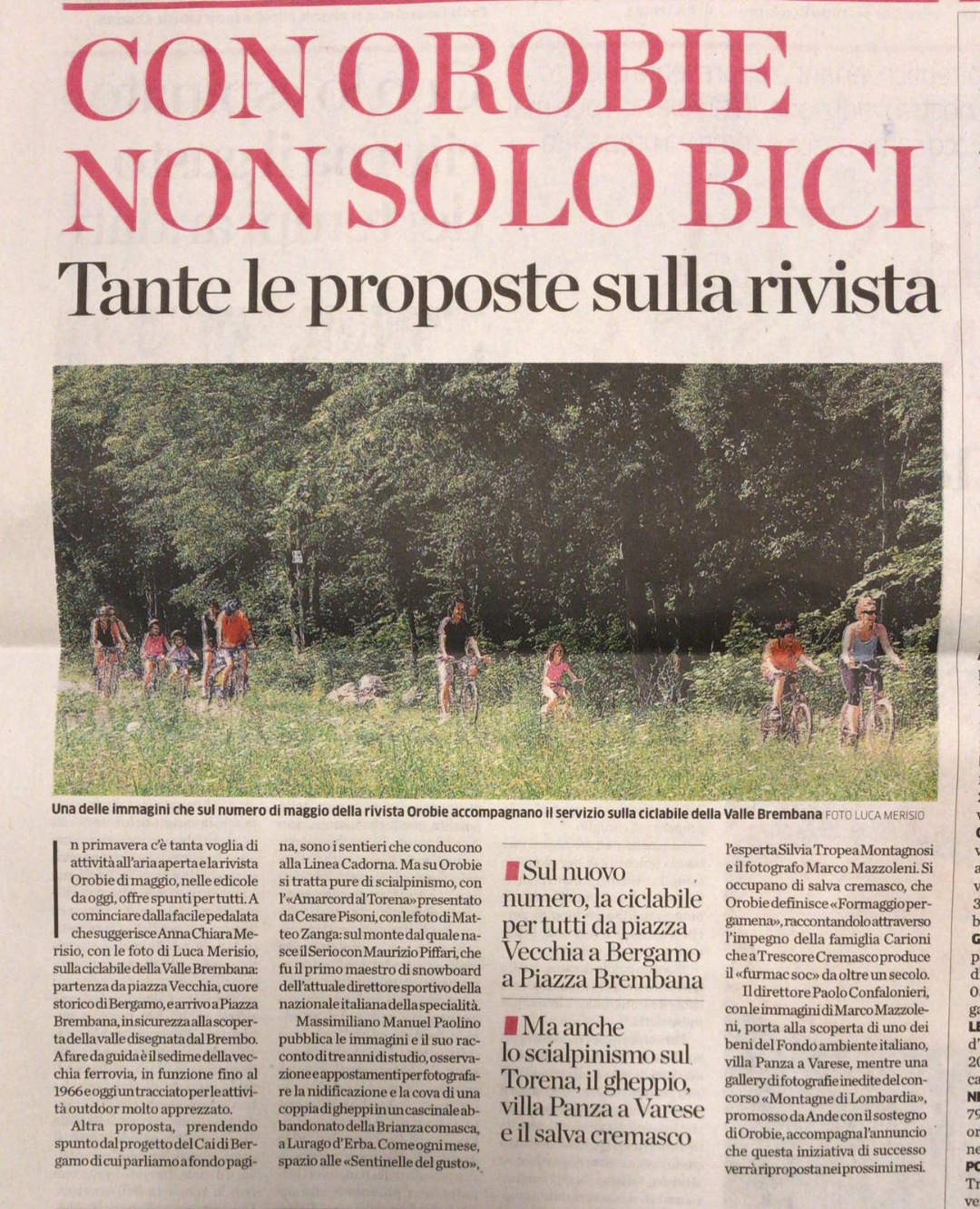 prosegue la promozione del territorio di Piazza Brembana. Sulla rivista Orobie di questo mese potete apprezzare l’articolo di AnnaChiara Merisio, con le fotografie dell’affermato Luca Merisio, che porta il turista ed il viandante dalla piazza vecchia di Bergamo al centro di Piazza Brembana, sulle due ruote, lungo il tragitto della ciclopedonale.