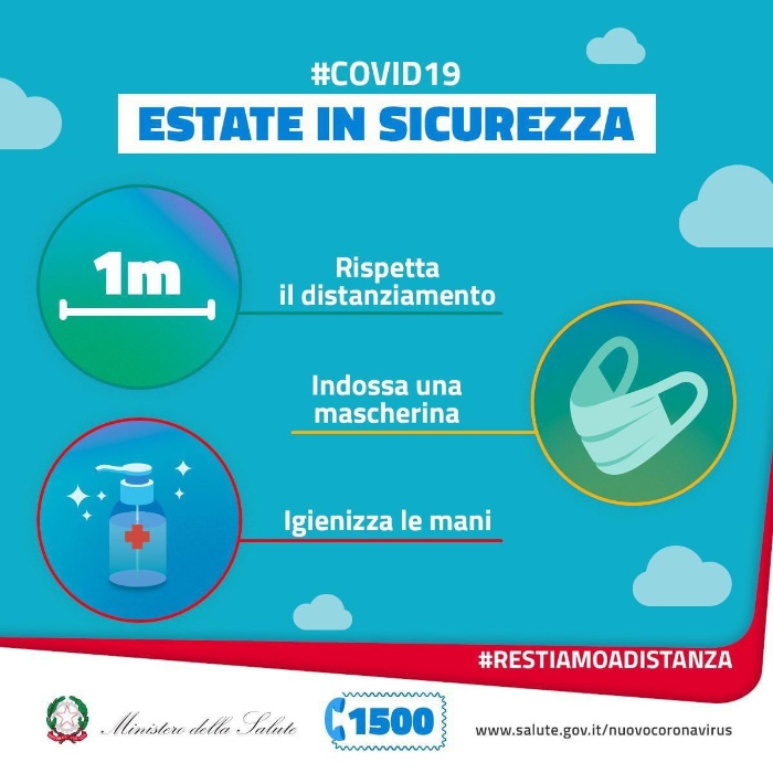 ️ Vivi l’estate in sicurezza! Per farlo basta seguire 3 regole: ↔️ mantieni la distanza di 1 m