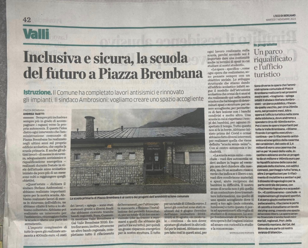 Su l’Eco di Bergamo, oggi e venerdì novembre, due articoli sui nostri progetti: