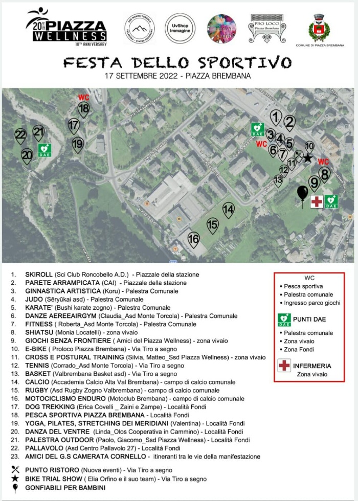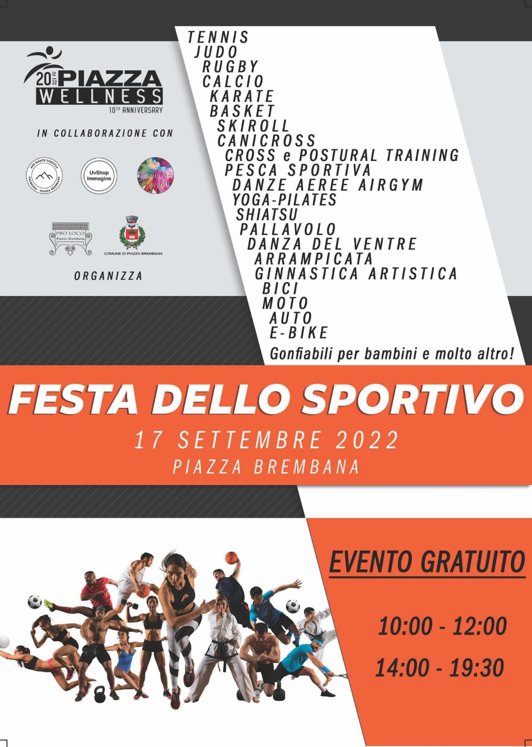 Sabato 17 settembre LA FESTA DELLO SPORTIVO è a Piazza Brembana Dalle 10:00 alle 19:30 Evento gratuito.. Piazza Wellness ASD Monte Torcola UvShop Immagine NUOVA - Eventi Pro Loco Piazza Brembana